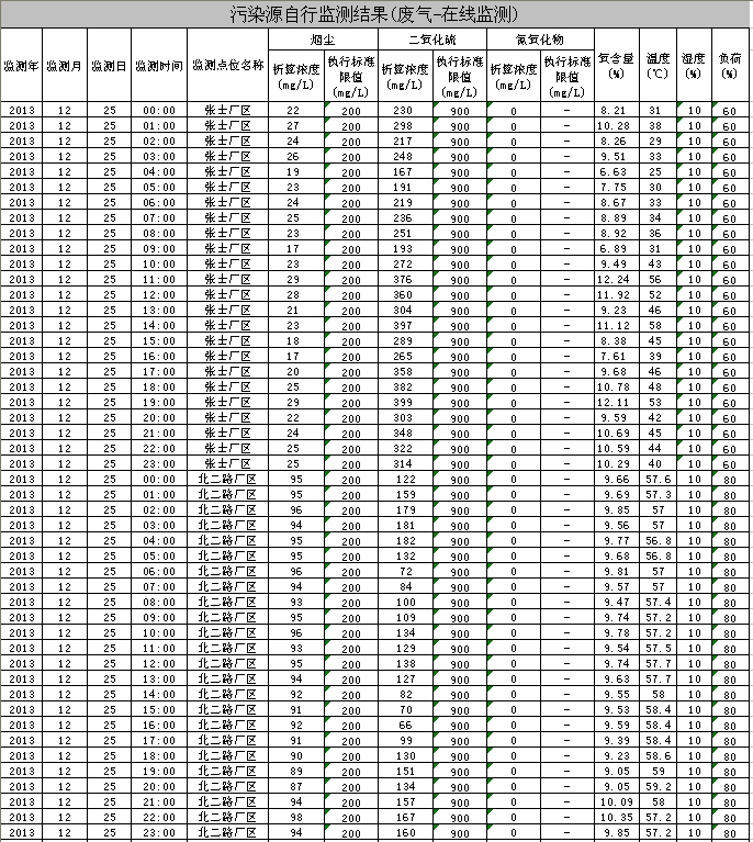 東北制藥集團(tuán)股份有限公司環(huán)境監(jiān)測數(shù)據(jù)-2013.12.25