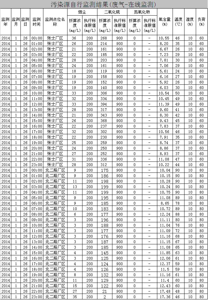 東北制藥集團(tuán)股份有限公司環(huán)境監(jiān)測(cè)數(shù)據(jù)-2014.01.26