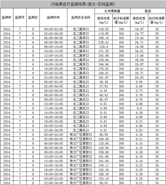 東北制藥集團(tuán)股份有限公司環(huán)境監(jiān)測數(shù)據(jù)-2014.07.09