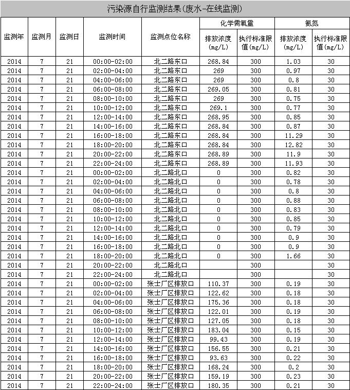 東北制藥集團股份有限公司環(huán)境監(jiān)測數(shù)據(jù)-2014.07.21