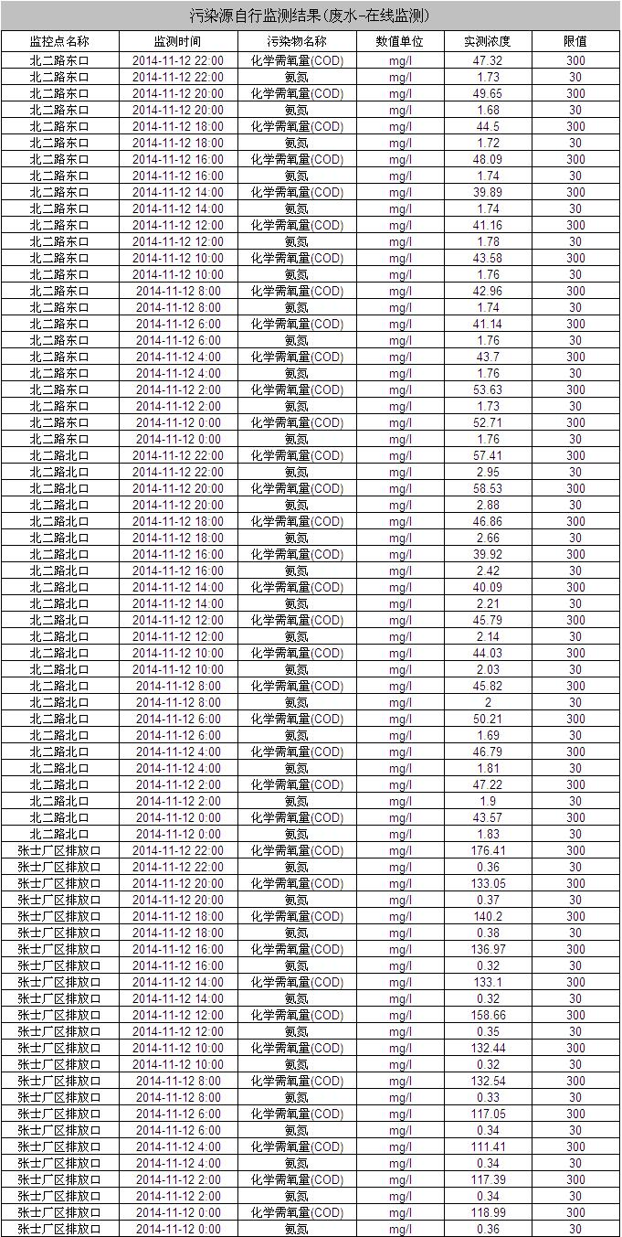 東北制藥集團股份有限公司環(huán)境監(jiān)測數(shù)據-2014.11.12