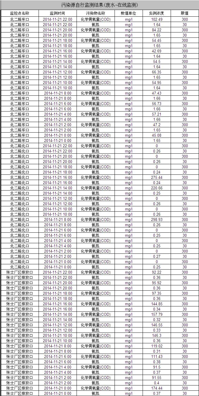 東北制藥集團股份有限公司環(huán)境監(jiān)測數(shù)據(jù)-2014.11.21