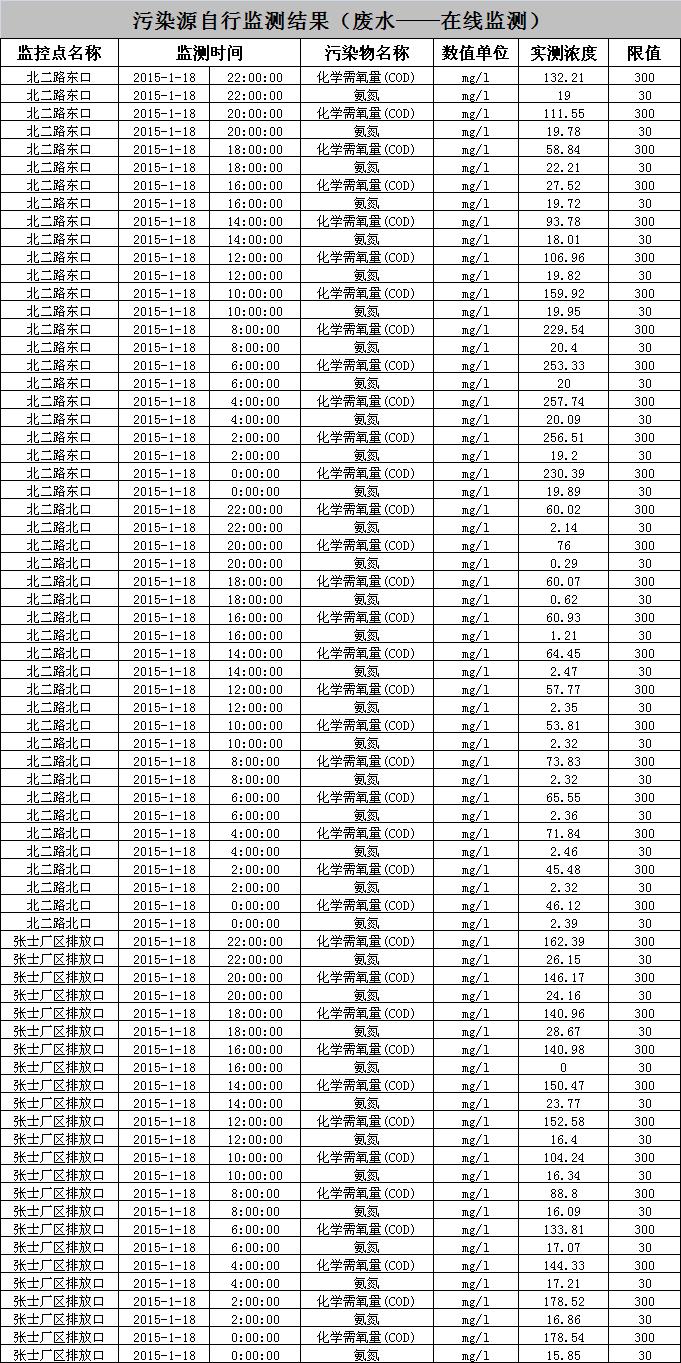 東北制藥集團(tuán)股份有限公司環(huán)境監(jiān)測數(shù)據(jù)-2015.01.18