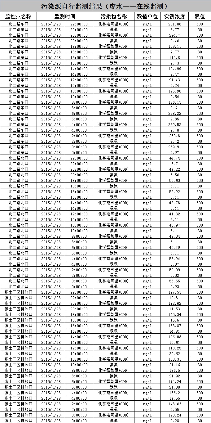 東北制藥集團(tuán)股份有限公司環(huán)境監(jiān)測數(shù)據(jù)-2015.01.28