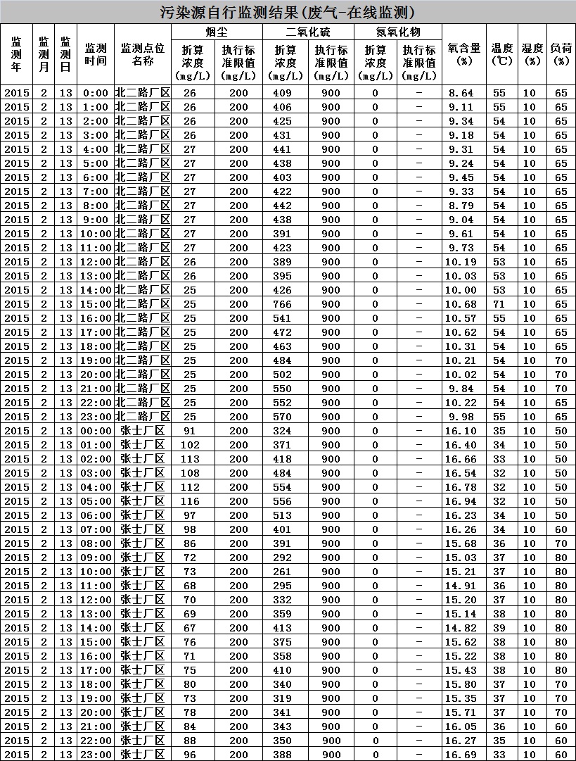 東北制藥集團(tuán)股份有限公司環(huán)境監(jiān)測(cè)數(shù)據(jù)-2015.02.13