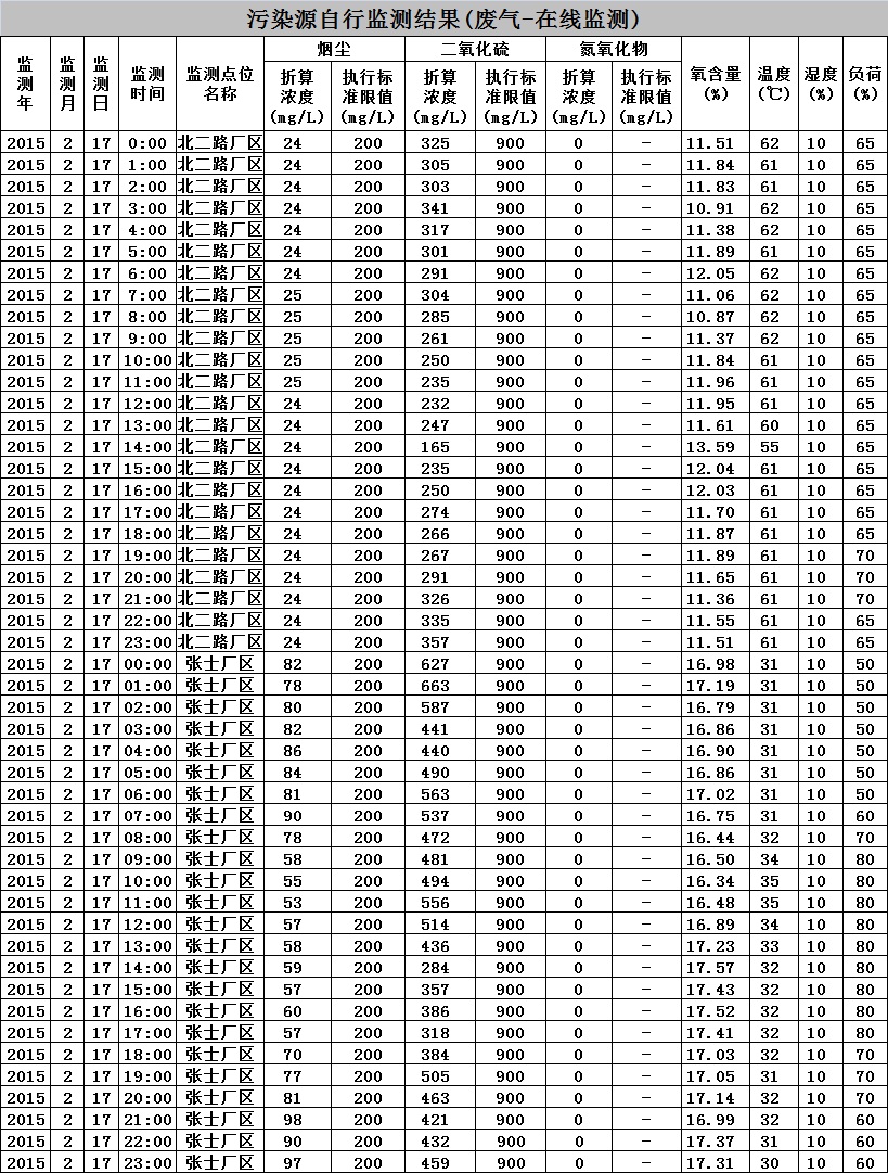 東北制藥集團股份有限公司環(huán)境監(jiān)測數(shù)據-2015.02.17