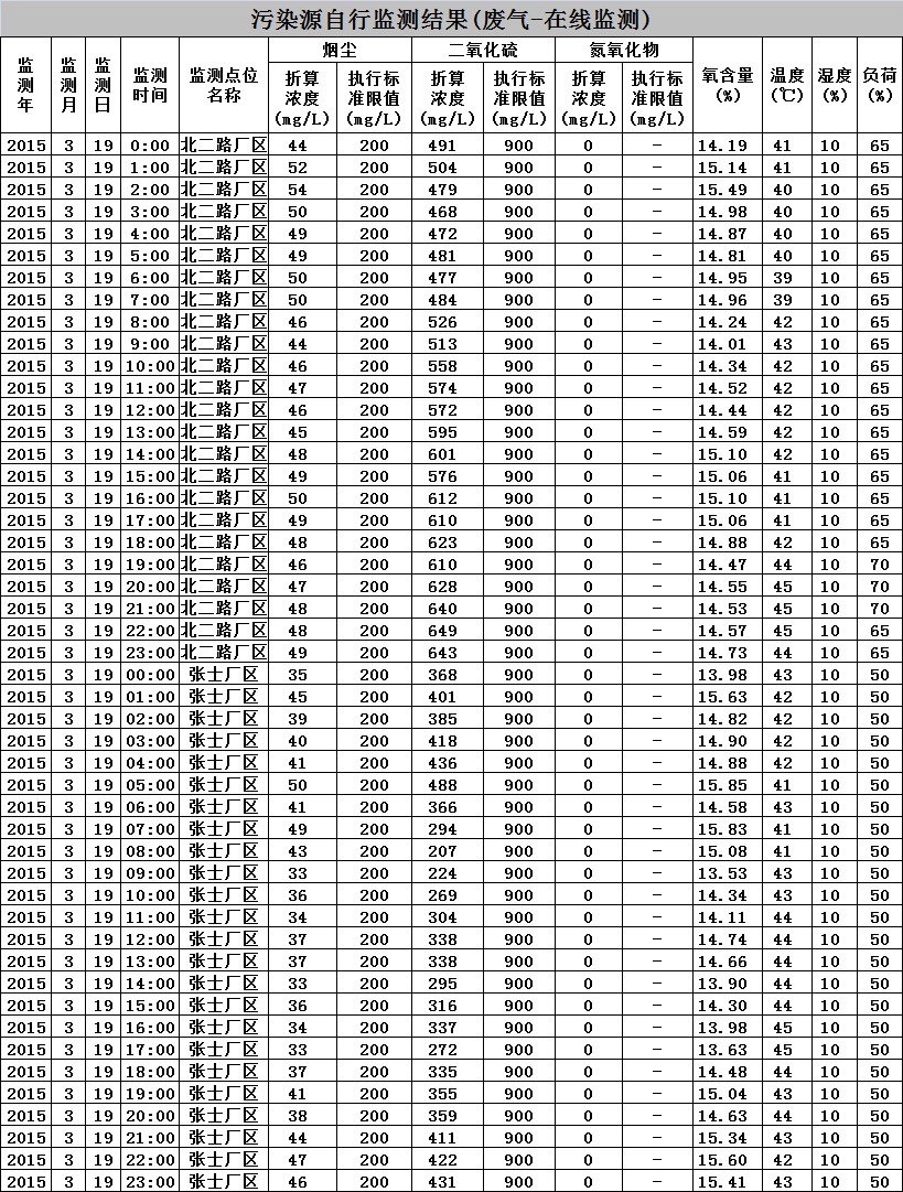 東北制藥集團(tuán)股份有限公司環(huán)境監(jiān)測(cè)數(shù)據(jù)-2015.03.19