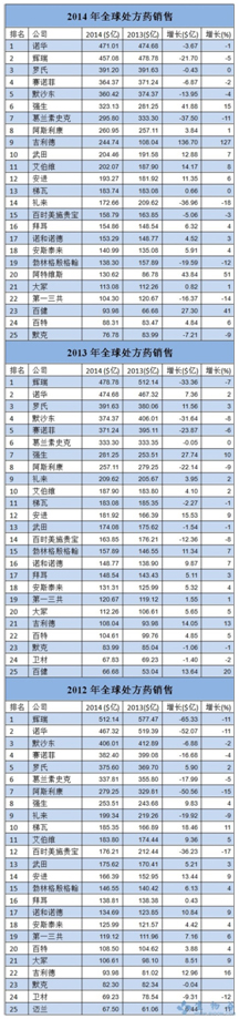 2014年全球處方藥銷售TOP25制藥巨頭,諾華奪魁
