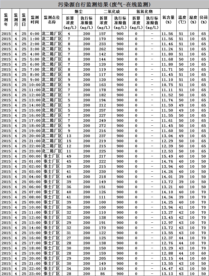 東北制藥集團股份有限公司環(huán)境監(jiān)測數(shù)據-2015.04.25