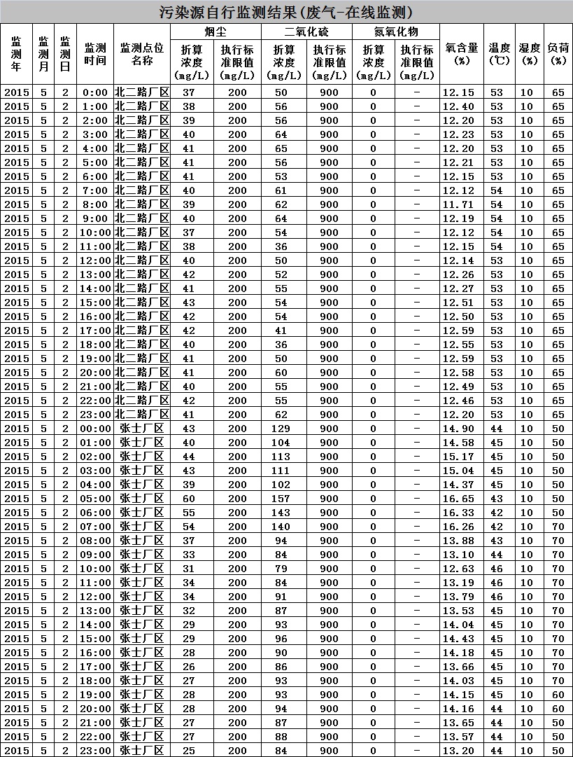 東北制藥集團(tuán)股份有限公司環(huán)境監(jiān)測數(shù)據(jù)-2015.05.02