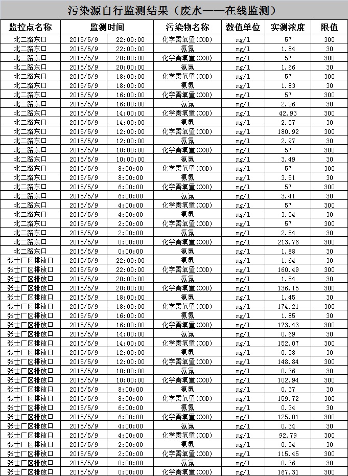 東北制藥集團(tuán)股份有限公司環(huán)境監(jiān)測(cè)數(shù)據(jù)-2015.05.09