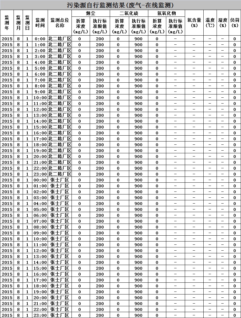 東北制藥集團(tuán)股份有限公司環(huán)境監(jiān)測(cè)數(shù)據(jù)-2015.08.01