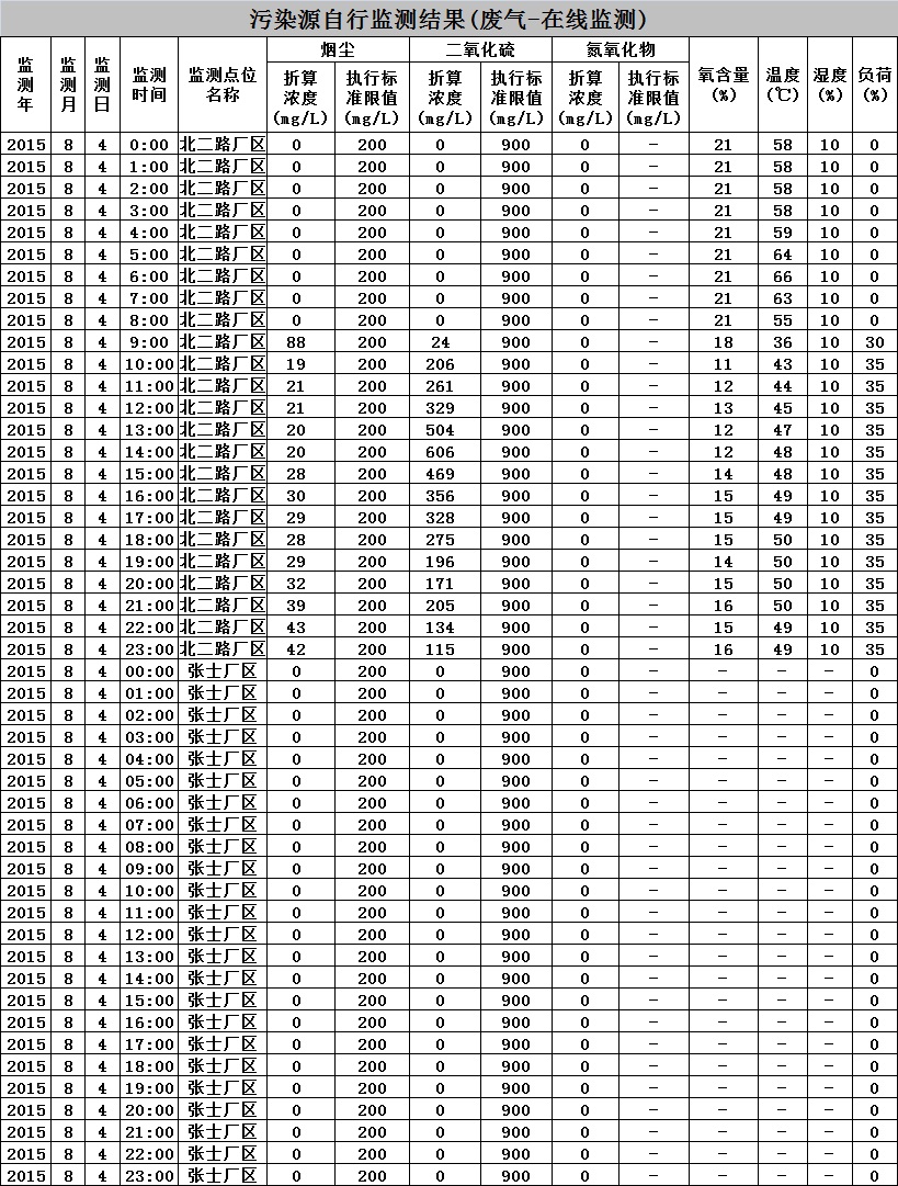 東北制藥集團股份有限公司環(huán)境監(jiān)測數(shù)據(jù)-2015.08.04