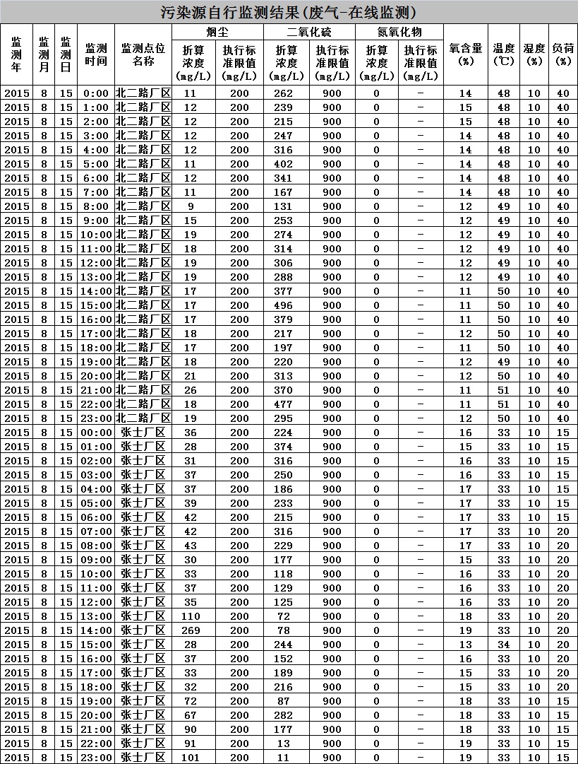 東北制藥集團(tuán)股份有限公司環(huán)境監(jiān)測數(shù)據(jù)-2015.08.15