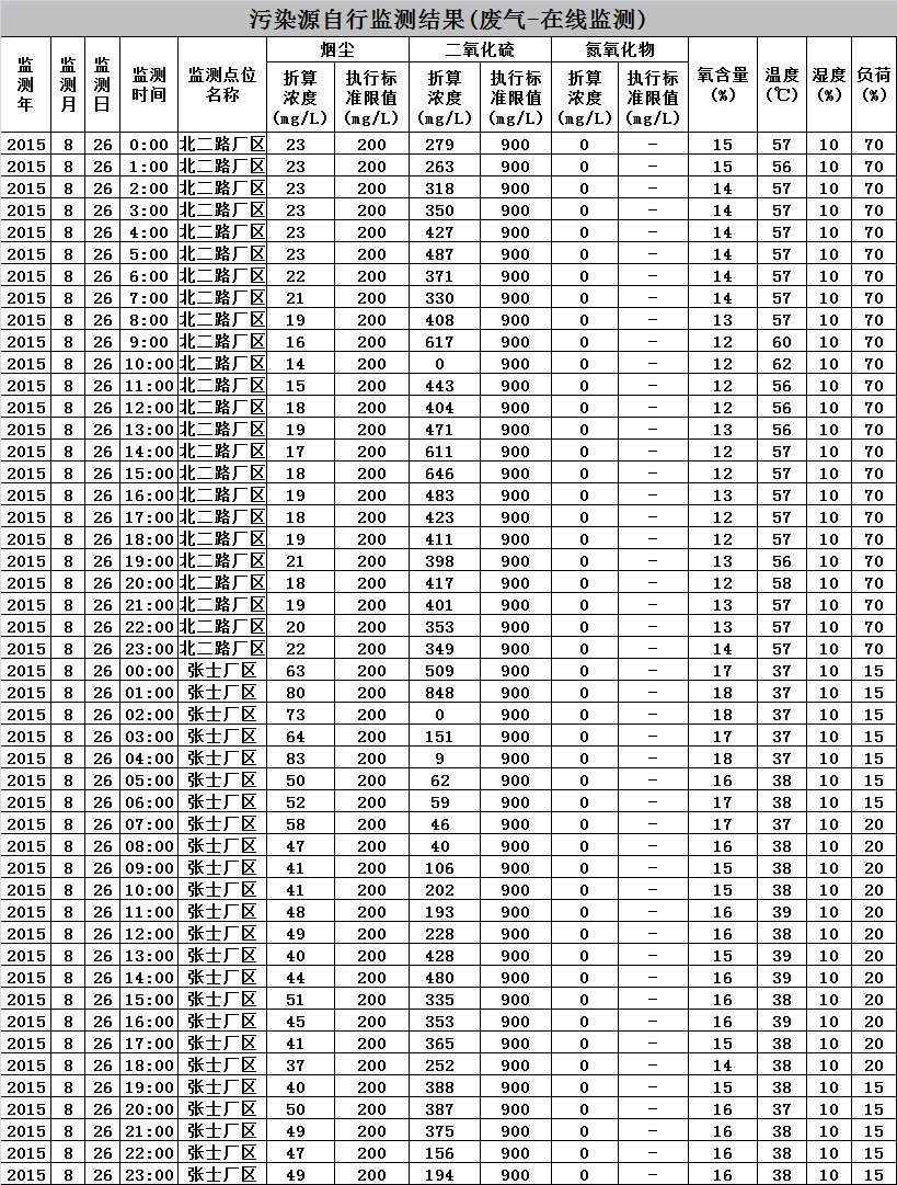 東北制藥集團股份有限公司環(huán)境監(jiān)測數(shù)據(jù)-2015.08.26