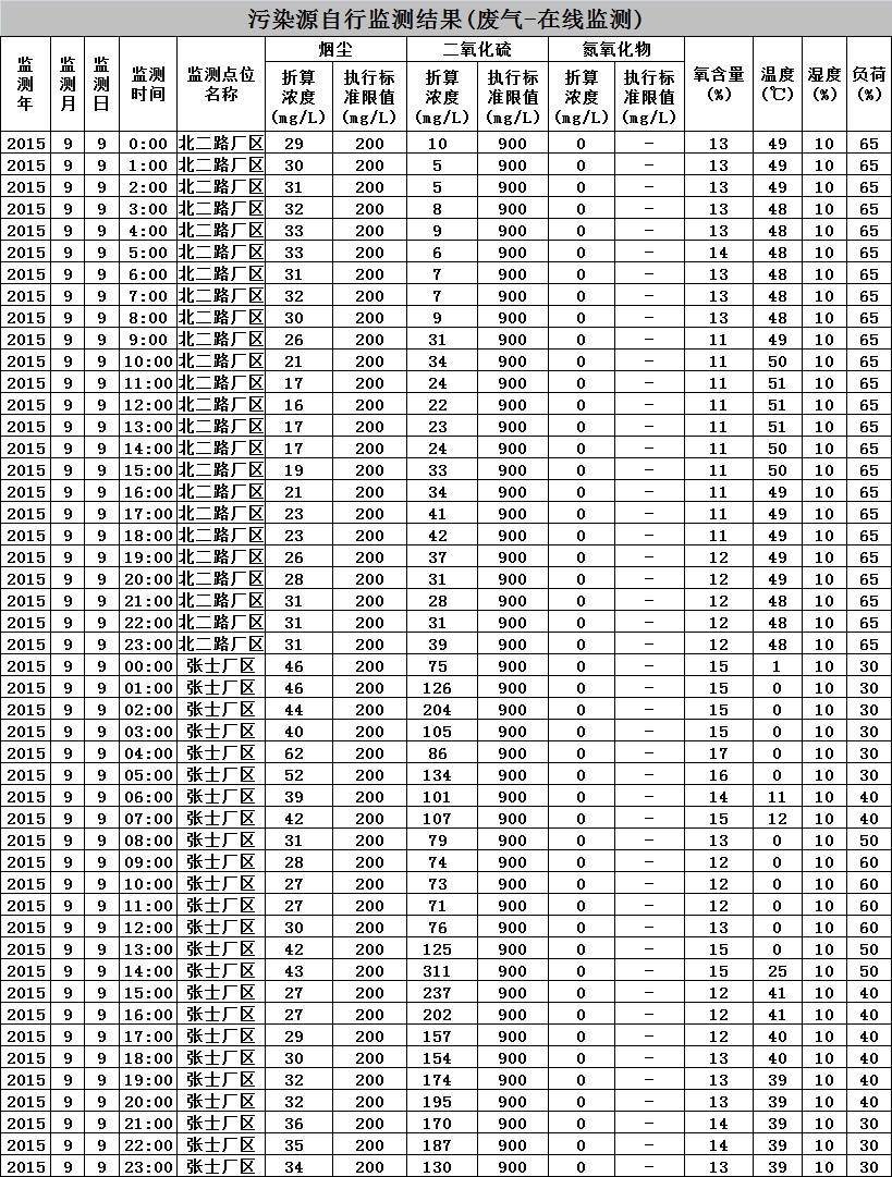 東北制藥集團股份有限公司環(huán)境監(jiān)測數(shù)據(jù)-2015.09.09
