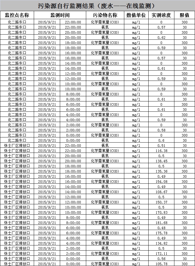東北制藥集團(tuán)股份有限公司環(huán)境監(jiān)測(cè)數(shù)據(jù)-2015.09.21
