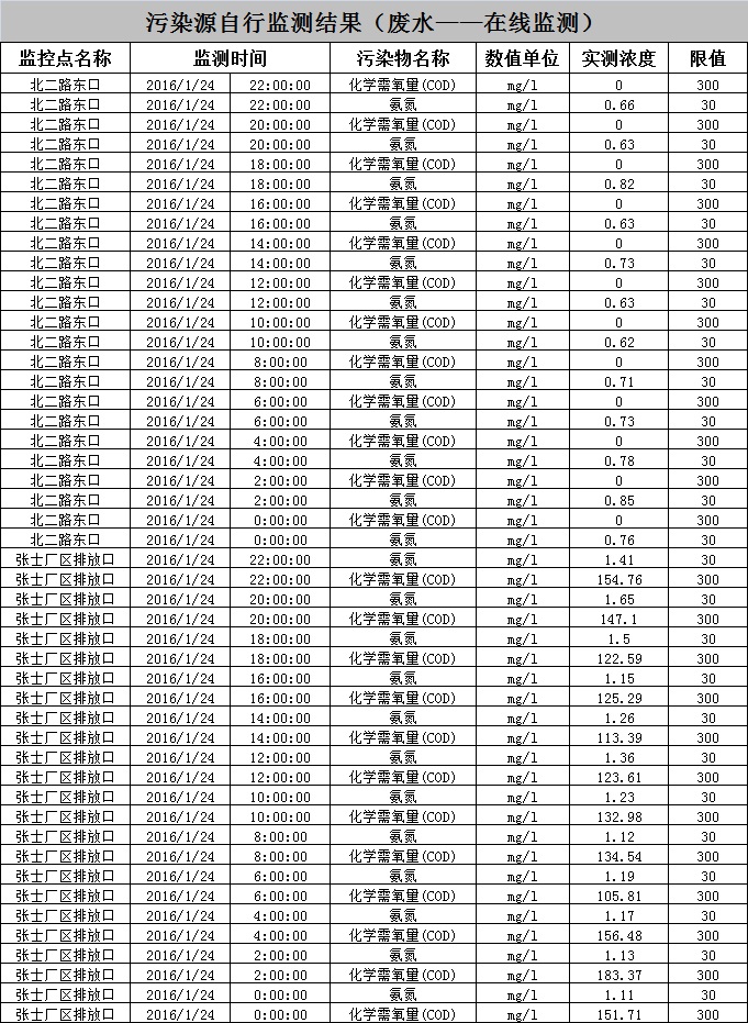 東北制藥集團(tuán)股份有限公司環(huán)境監(jiān)測(cè)數(shù)據(jù)-2016.01.24