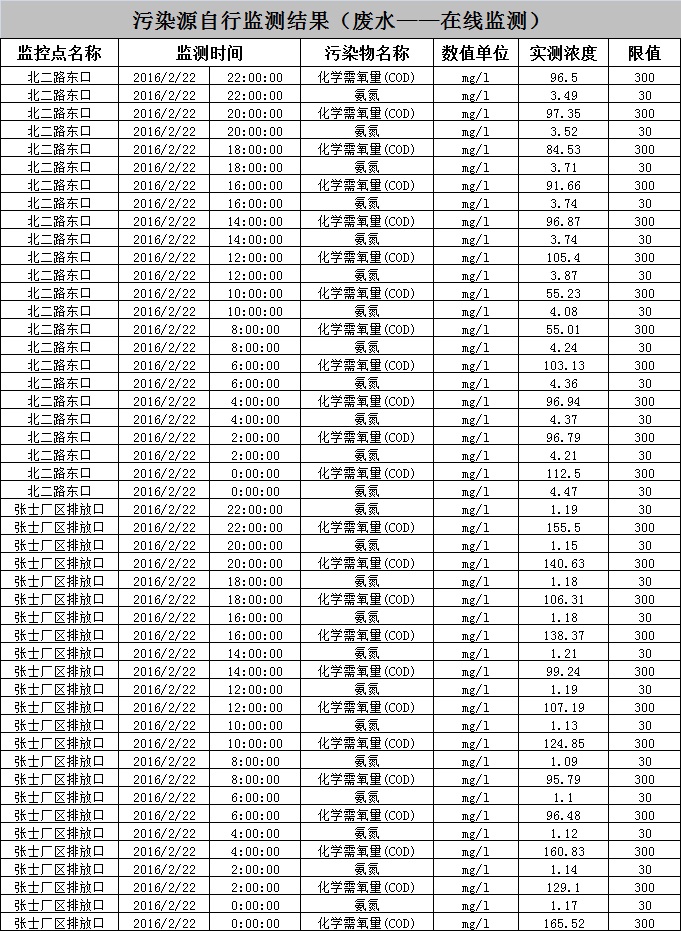 東北制藥集團股份有限公司環(huán)境監(jiān)測數(shù)據(jù)-2016.02.22