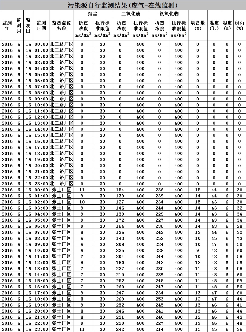 東北制藥集團(tuán)股份有限公司環(huán)境監(jiān)測數(shù)據(jù)-2016.06.16