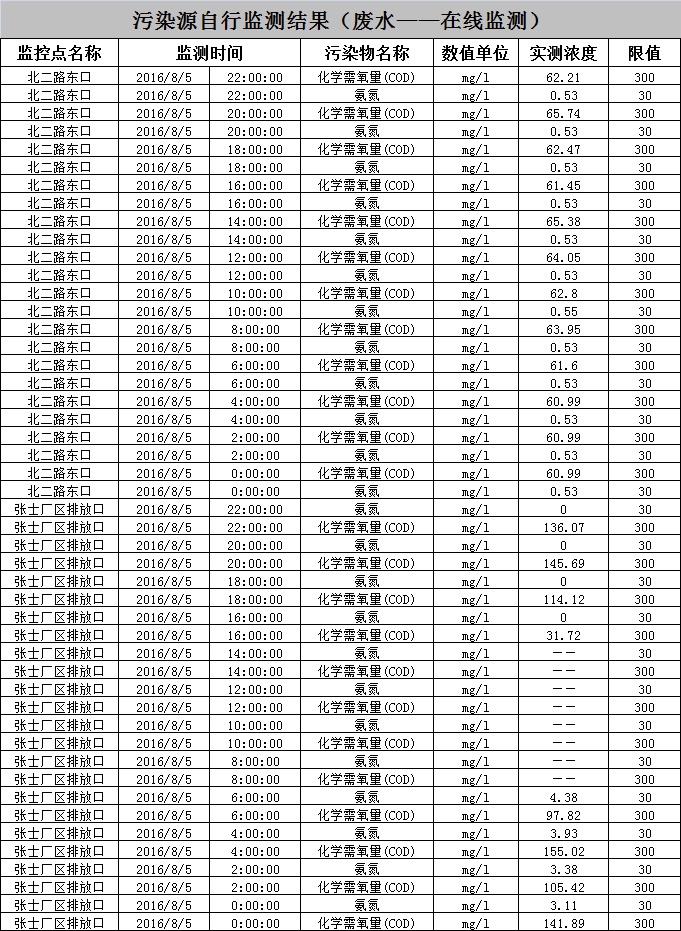 東北制藥集團(tuán)股份有限公司環(huán)境監(jiān)測(cè)數(shù)據(jù)-2016.08.05