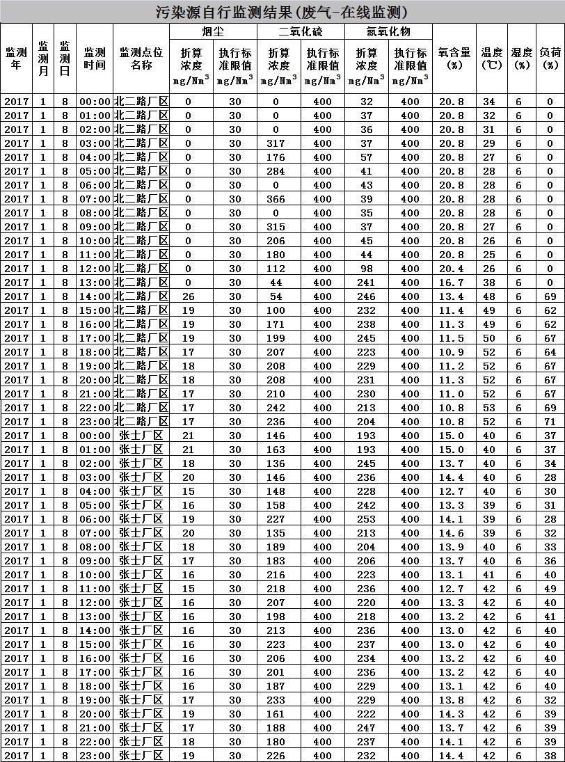 東北制藥集團股份有限公司環(huán)境監(jiān)測數(shù)據(jù)-2017.1.8