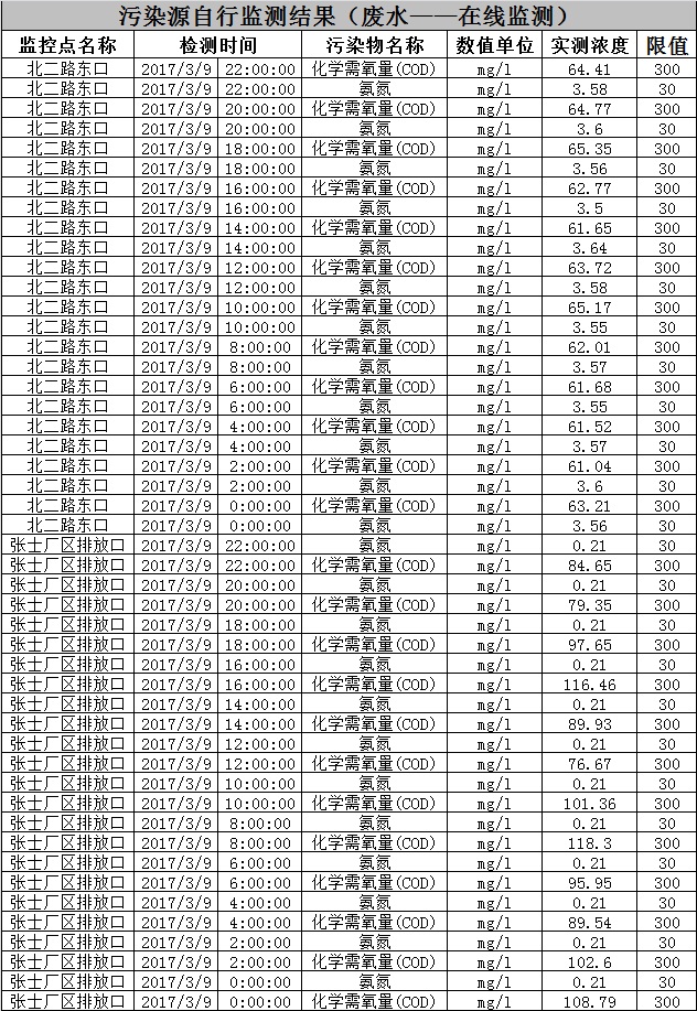 東北制藥集團股份有限公司環(huán)境監(jiān)測數(shù)據(jù)-2017.3.9