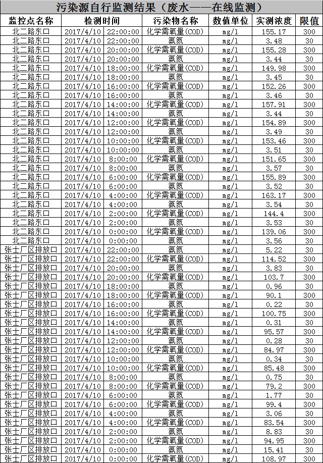 東北制藥集團(tuán)股份有限公司環(huán)境監(jiān)測數(shù)據(jù)-2017.4.10