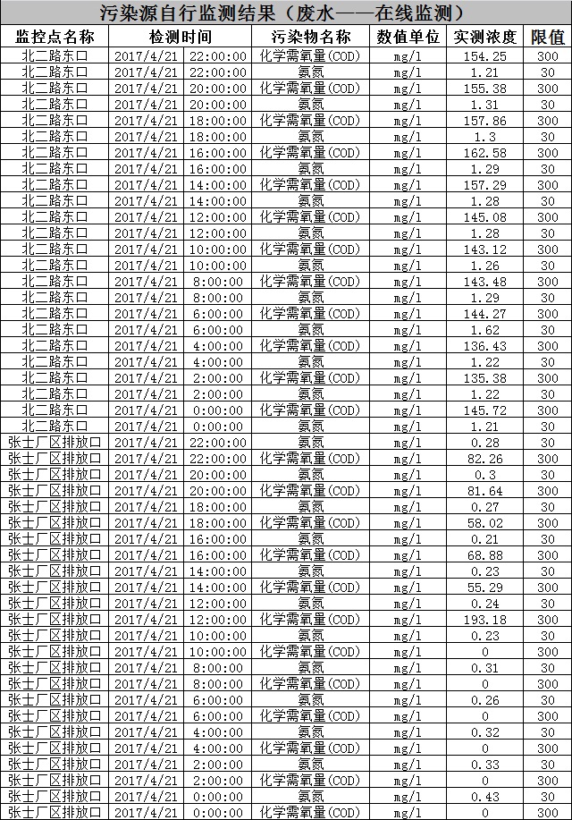 東北制藥集團(tuán)股份有限公司環(huán)境監(jiān)測數(shù)據(jù)-2017.4.21