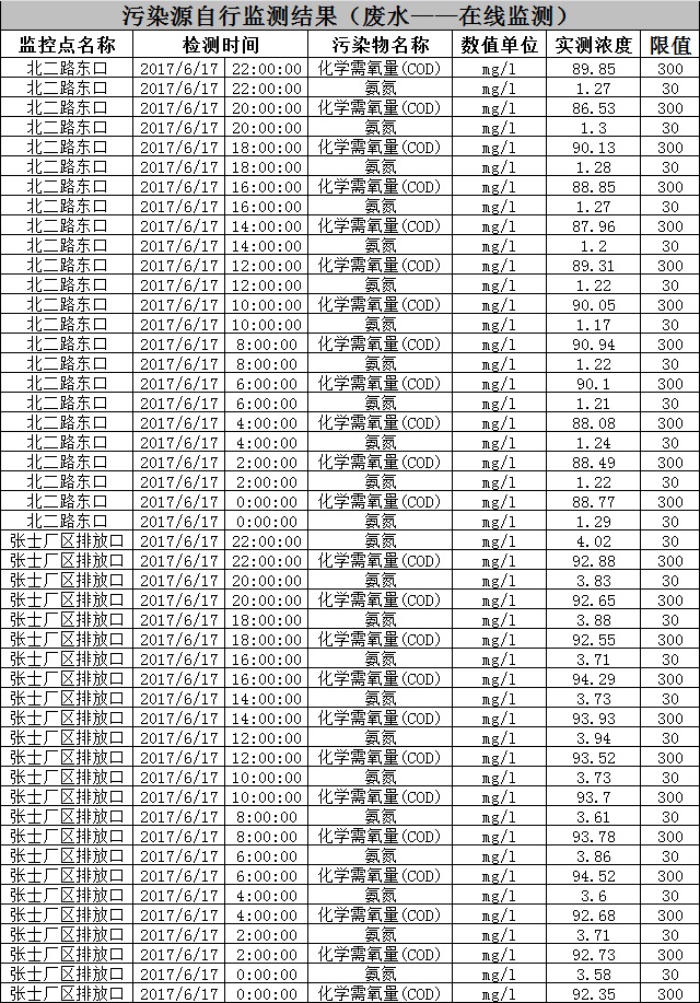 東北制藥集團(tuán)股份有限公司環(huán)境監(jiān)測(cè)數(shù)據(jù)-2017.6.17