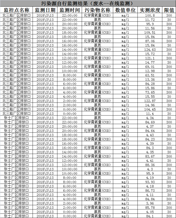 東北制藥集團(tuán)股份有限公司環(huán)境監(jiān)測數(shù)據(jù)-2018.03.13