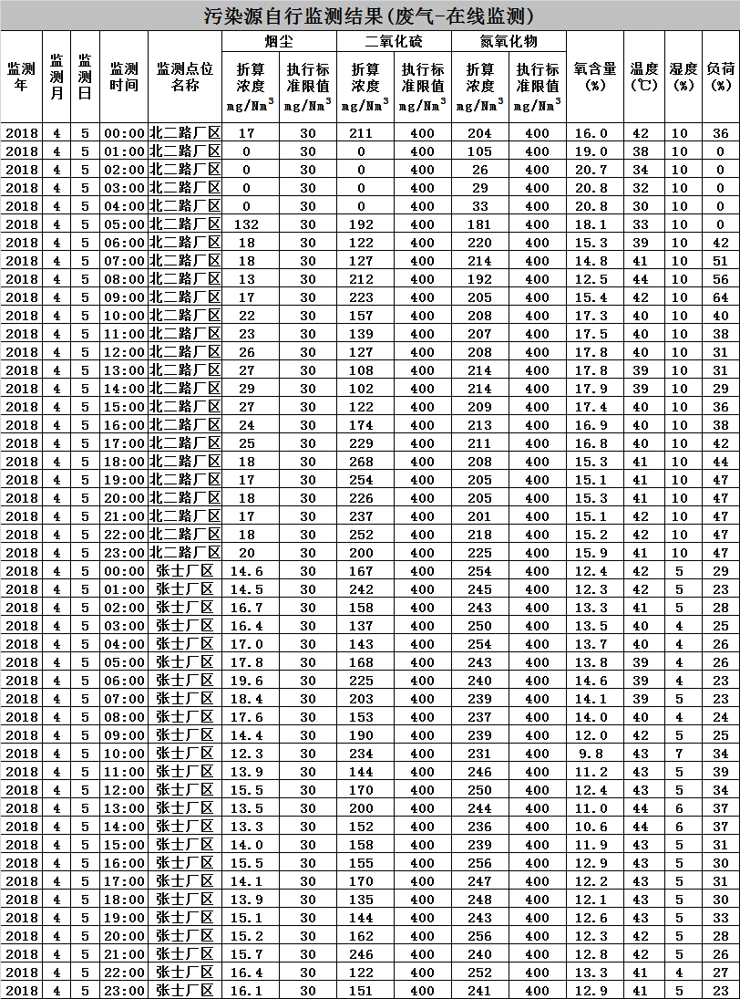 東北制藥集團股份有限公司環(huán)境監(jiān)測數(shù)據(jù)-2018.04.05