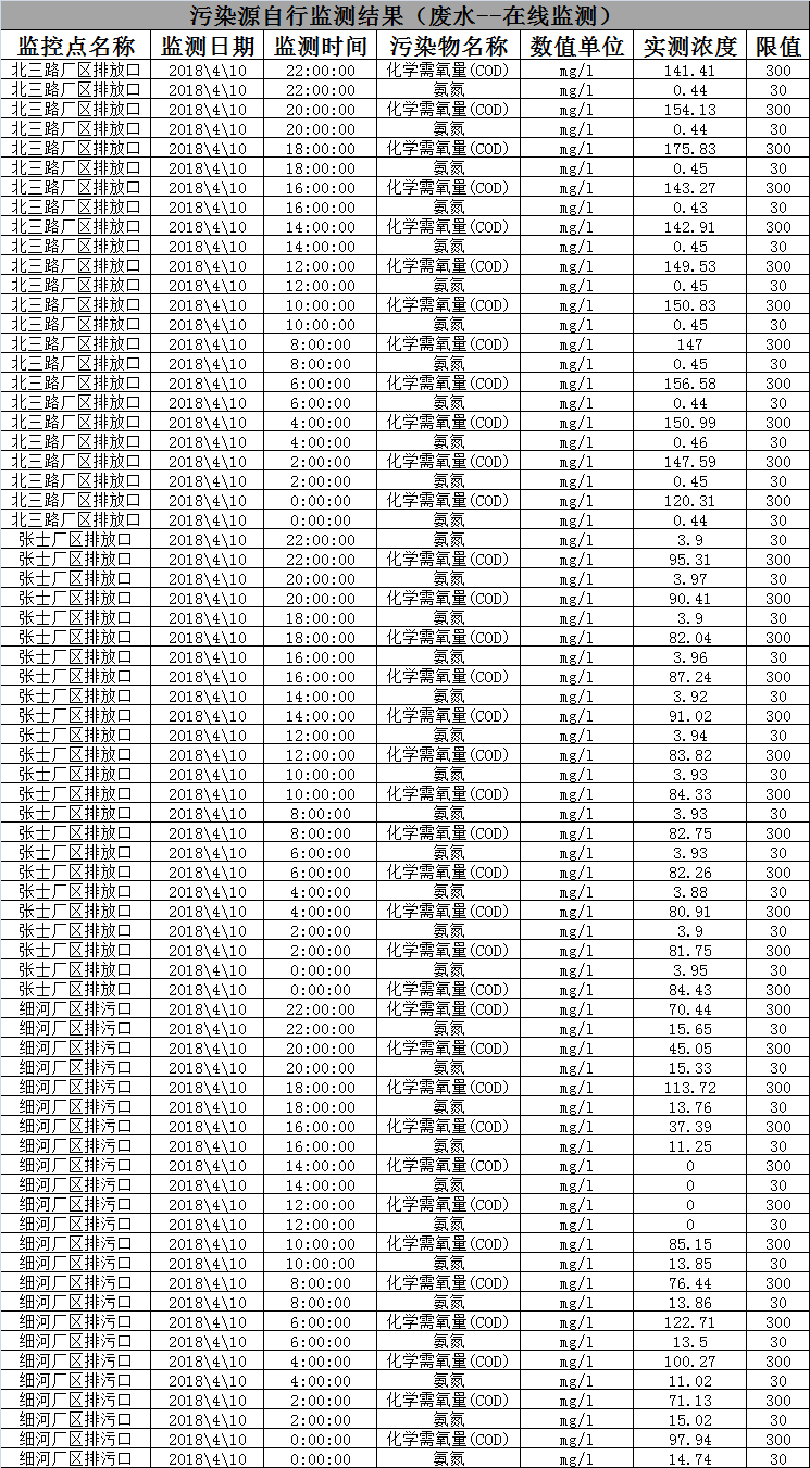東北制藥集團(tuán)股份有限公司環(huán)境監(jiān)測數(shù)據(jù)-2018.04.10