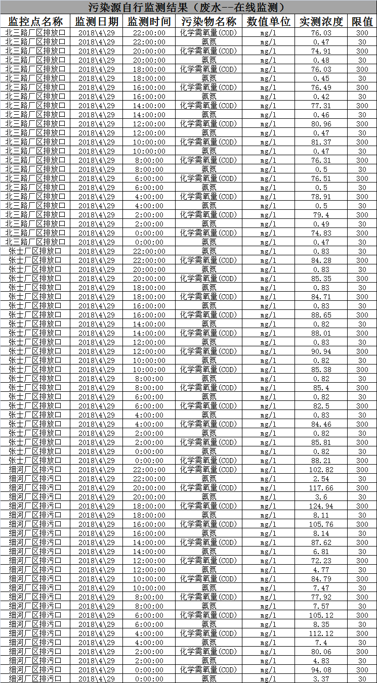 東北制藥集團股份有限公司環(huán)境監(jiān)測數(shù)據(jù)-2018.04.29