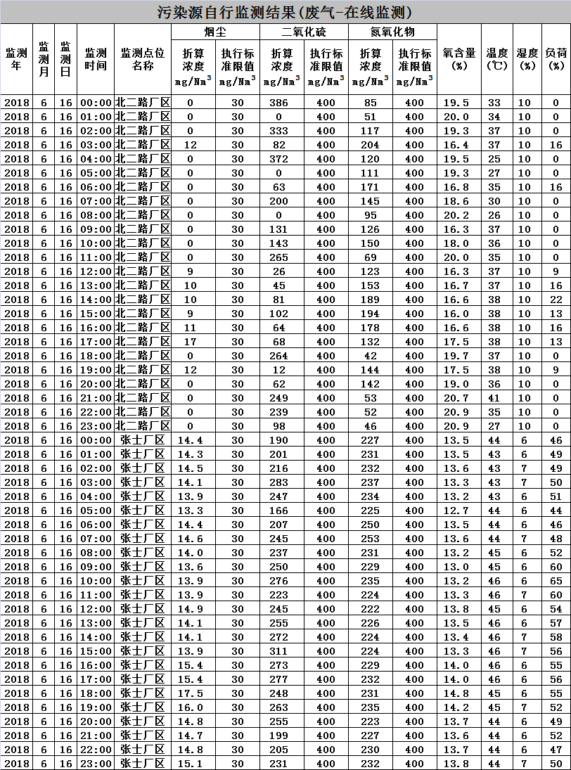 東北制藥集團股份有限公司環(huán)境監(jiān)測數據-2018.06.16