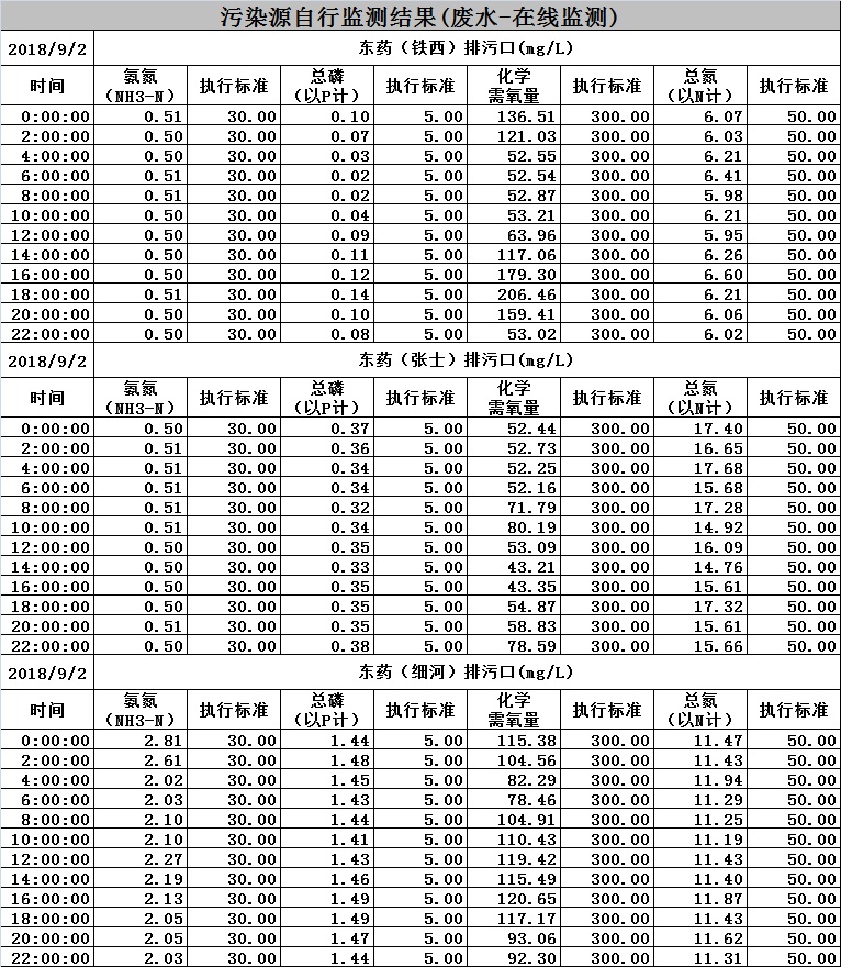 東北制藥集團(tuán)股份有限公司環(huán)境監(jiān)測(cè)數(shù)據(jù)-2018.09.02