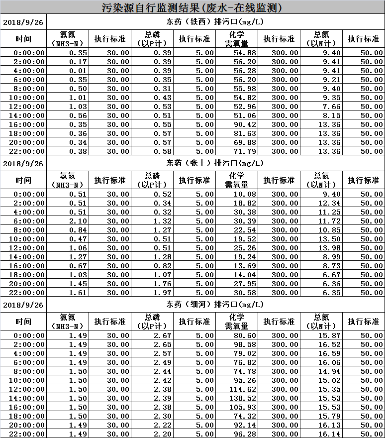 東北制藥集團股份有限公司環(huán)境監(jiān)測數據-2018.09.26