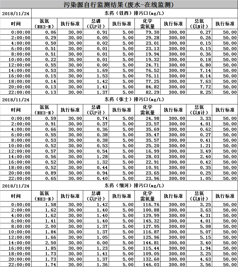 東北制藥集團(tuán)股份有限公司環(huán)境監(jiān)測(cè)數(shù)據(jù)-2018.11.24