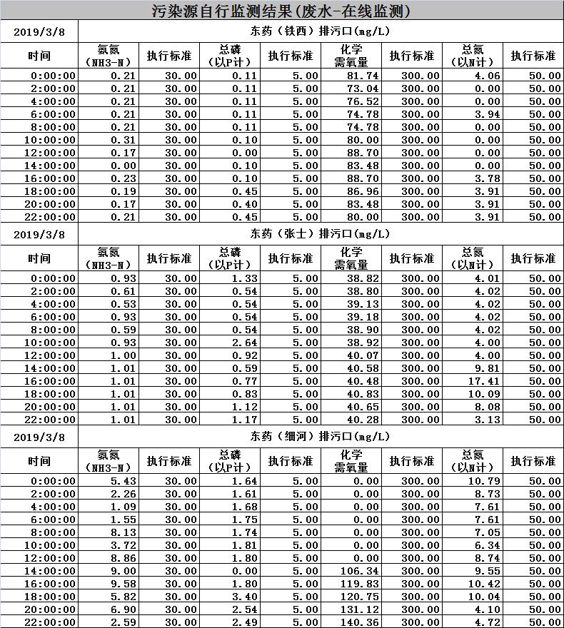 東北制藥集團(tuán)股份有限公司環(huán)境監(jiān)測數(shù)據(jù)-2019.3.8