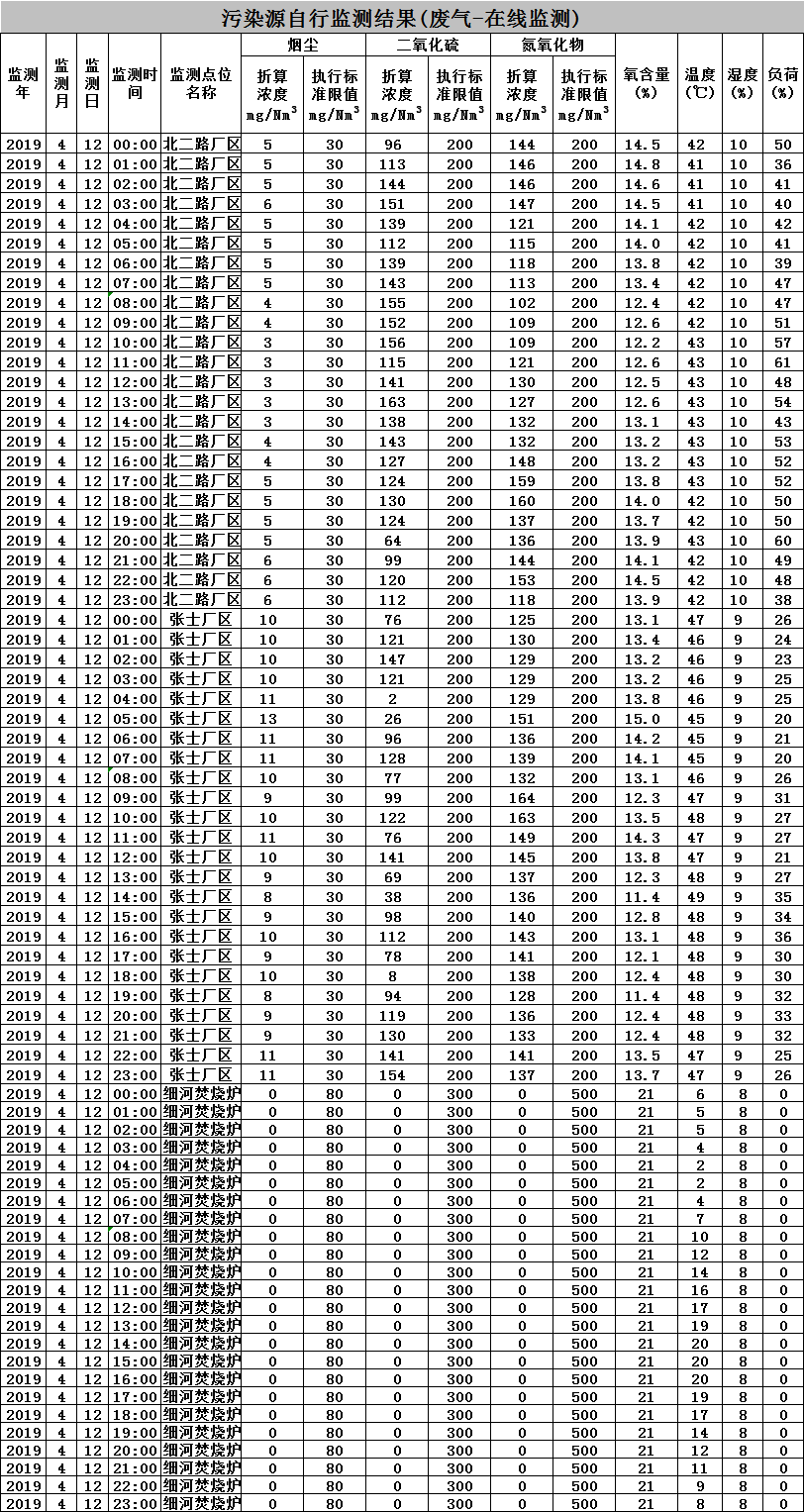 東北制藥集團(tuán)股份有限公司環(huán)境監(jiān)測(cè)數(shù)據(jù)-2019.4.12