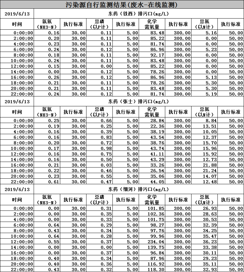 東北制藥集團(tuán)股份有限公司環(huán)境監(jiān)測數(shù)據(jù)-2019.6.13