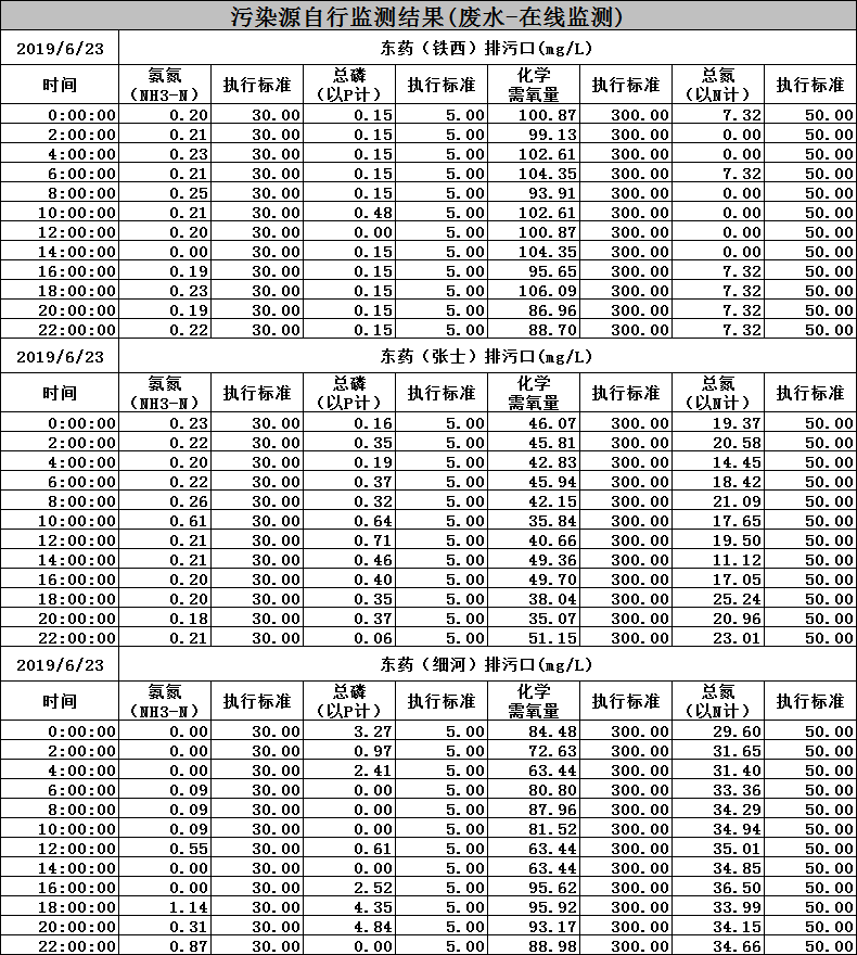 東北制藥集團(tuán)股份有限公司環(huán)境監(jiān)測(cè)數(shù)據(jù)-2019.6.23