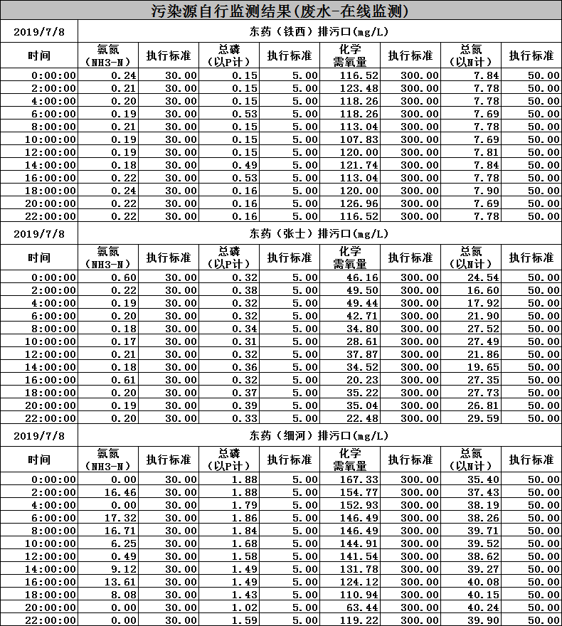 東北制藥集團(tuán)股份有限公司環(huán)境監(jiān)測(cè)數(shù)據(jù)-2019.7.8