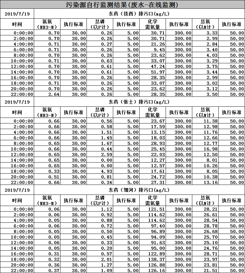 東北制藥集團股份有限公司環(huán)境監(jiān)測數(shù)據(jù)-2019.7.19