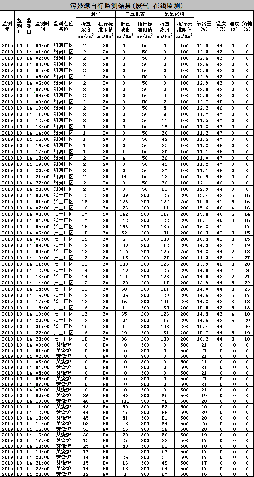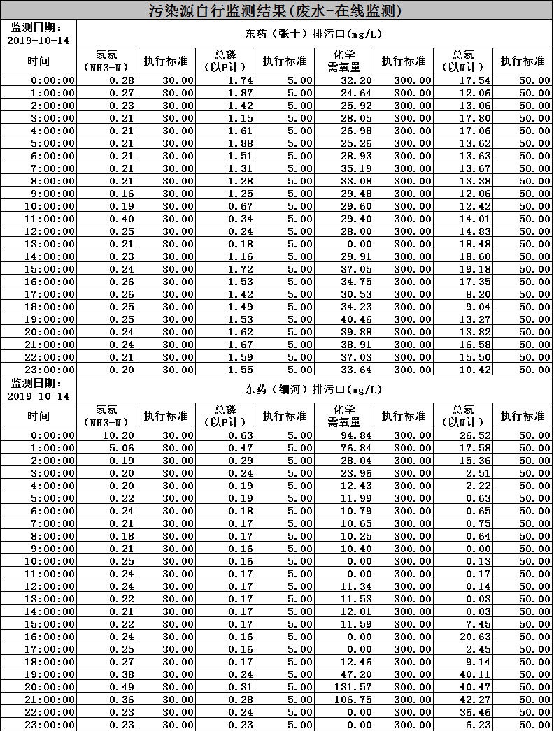 東北制藥集團(tuán)股份有限公司環(huán)境監(jiān)測數(shù)據(jù)-2019.10.14