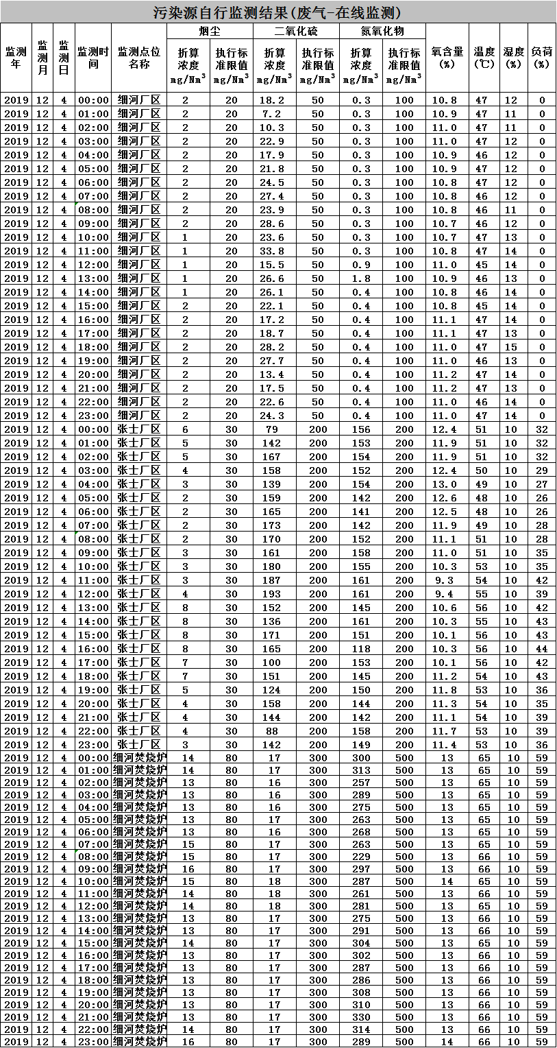 東北制藥集團(tuán)股份有限公司環(huán)境監(jiān)測(cè)數(shù)據(jù)-2019.12.4