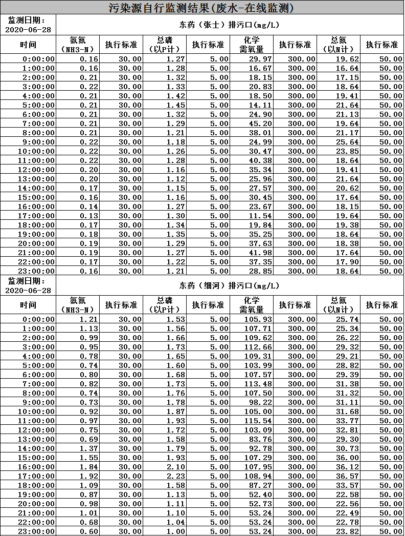 東北制藥集團(tuán)股份有限公司環(huán)境監(jiān)測(cè)數(shù)據(jù)-2020.6.28
