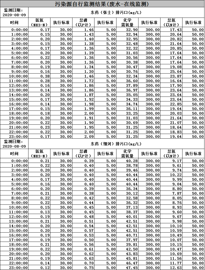 東北制藥集團股份有限公司環(huán)境監(jiān)測數(shù)據(jù)-2020.8.9