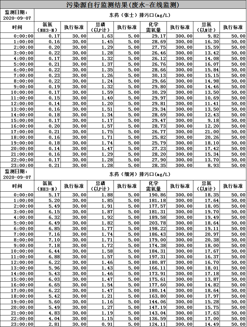 東北制藥集團(tuán)股份有限公司環(huán)境監(jiān)測(cè)數(shù)據(jù)-2020.9.7