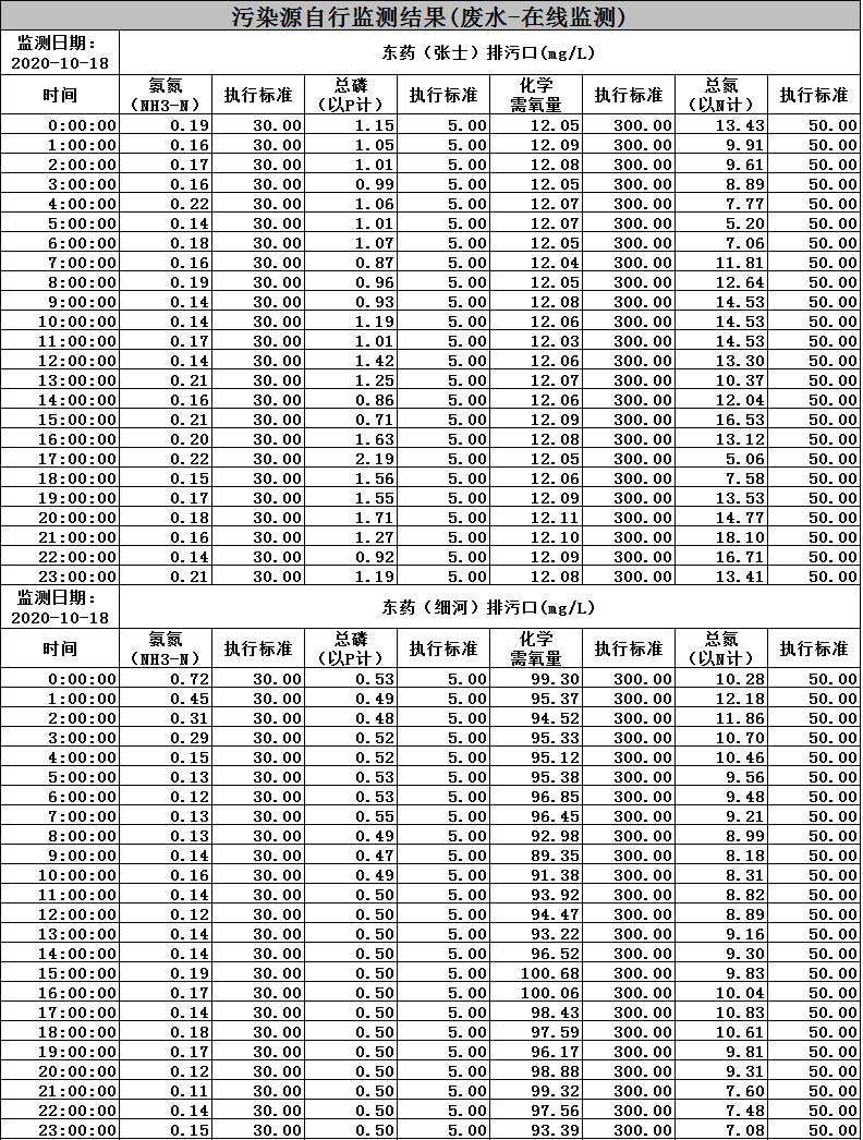 東北制藥集團(tuán)股份有限公司環(huán)境監(jiān)測(cè)數(shù)據(jù)-2020.10.18